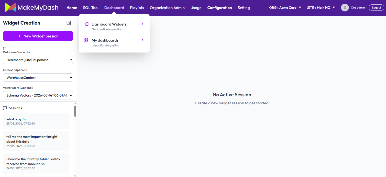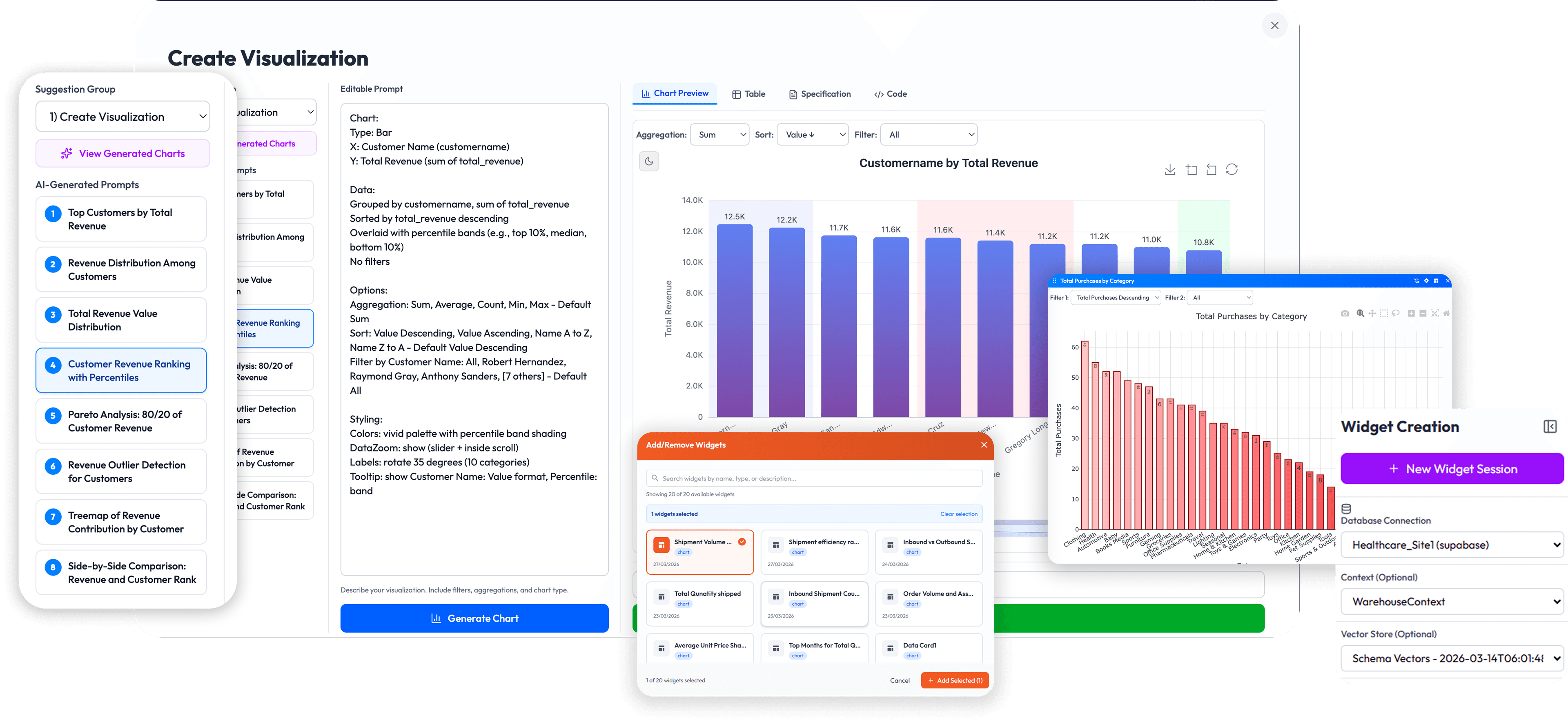 This document explains the end-to-end flow of creating widgets, generating charts, and building dashboards in the WMS platform. It covers every step a user goes through, from asking a question in natural language to seeing a live widget on their dashboard.
