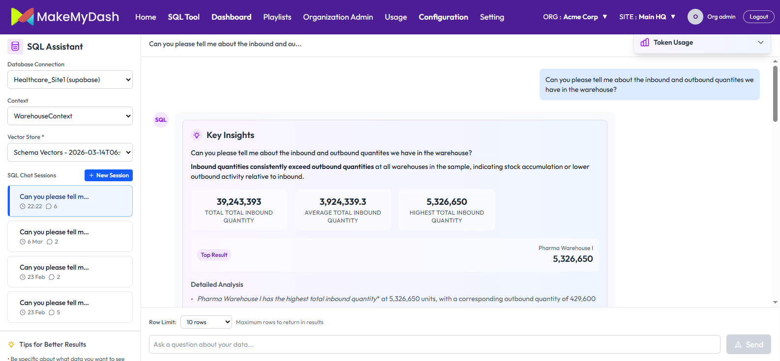 Connect your WMS databases and transform operational data into real-time, AI-powered dashboards. Across every warehouse, every site, every client. No SQL. No coding. No waiting.
